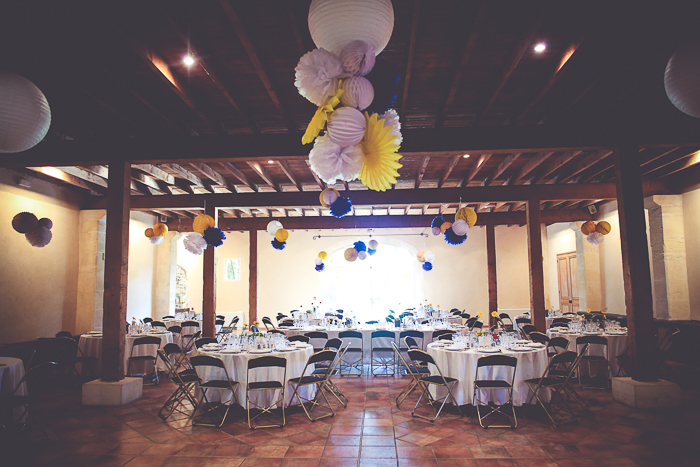 Sur un thème couleur jaune et bleu, Anaïs et Nicolas nous ont emmené dans un décor paradisiaque au cœur de la plaine de Crau en Provence : au château de Vergières.