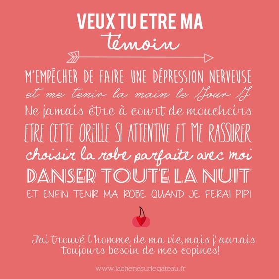 De mon côté, je n’ai pas suivi mon propre conseil et j’ai juste hurlé (en mode hystérique) « tu veux être mon témoinnnnnnnnnn ? »… Résultat, je regrette maintenant ! Surtout en voyant toutes les jolies idées des copines et des futures mariées qui m’entourent. Alors, ne faites pas comme moi et réservez leur une jolie surprise !