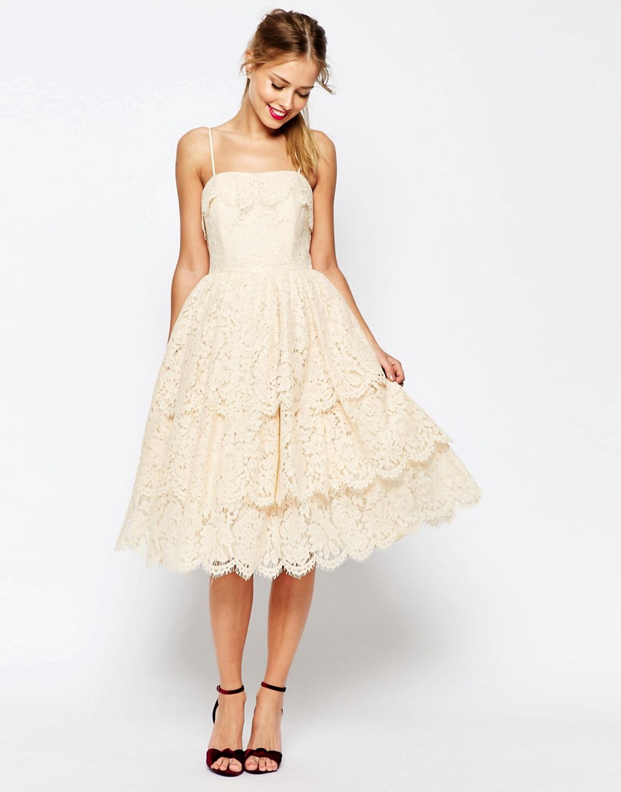 Il faut évidemment éviter les robes qui font trop « mariée »… Exit la cousine peste jalouse qui rêve secrètement de se marier et qui en profite pour se pointer avec une robe longue blanche et toute en dentelle (celle là vous pouvez lui faire un croche pied direct sans hésiter) mais pour celles qui jouent le jeu, ça peut vite devenir le code couleur parfait !