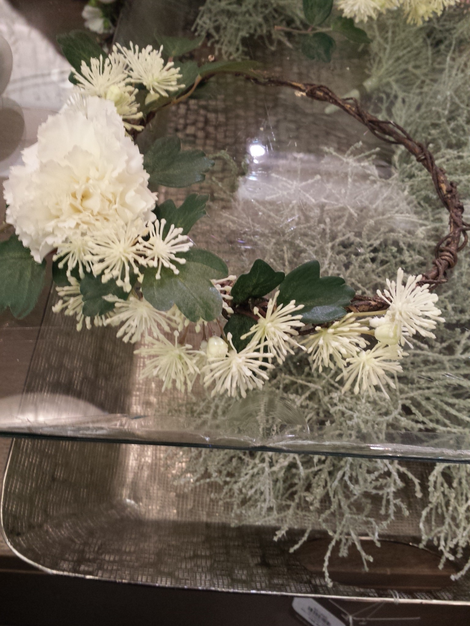 Ceci dit, je préfère vous parler de la couronne, qui m’a vraiment séduite (je crois que je suis vieux jeu et que je préfère vraiment les fleurs fraiches pour le bouquet…).